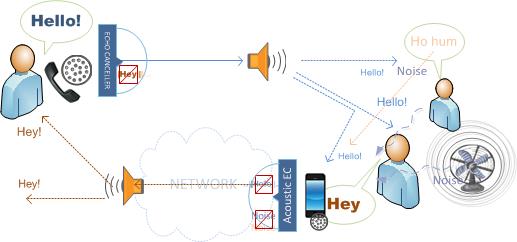If echo cancellation is not performed (and the network delay is moderate), the speaker at Phone A will perceive his echo. It is the responsibility of Echo Canceller B to cancel the echo that is induced by Hybrid B. Likewise, it is the responsibility of Echo Canceller A to cancel the echo that is induced by Hybrid A.