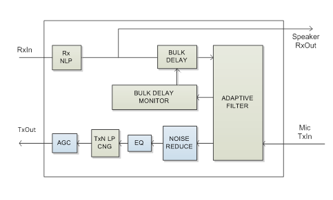 The above figure is a simplified block diagram of the HD Acoustic Echo Canceller.