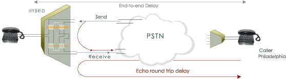 Active hybrid circuits provide some echo reduction, but not enough when the end-to-end circuit delay is even moderate. The signal being reflected back is measured as ERL (Echo Return Loss), the higher the ERL, the lower the reflected signal back to the speaker.