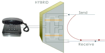 The vast majority of the public telephone system local loop wiring is done using two-wire connections whereby the same pair of wires carries voice signals in both directions. In the telephone company’s central office or in an office PBX, a two-to-four wire conversion is done using a hybrid circuit. Hybrid circuits do not perform perfect impedance matches. The imperfection results in Hybrid echo.
